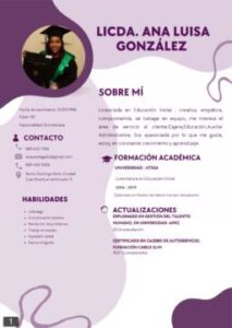 Estoy graduada de bachillerato técnico en administración, emprendimiento, contabilidad y finanzas. He adquirido conocimientos básicos de facturación, manejo básico en Excel, Word y atención al cliente. Me considero una persona creativa, organizada y responsable, con una gran capacidad para trabajar en equipo, lo que me convierte en una colaboradora eficaz y comprometida en cualquier entorno profesional.